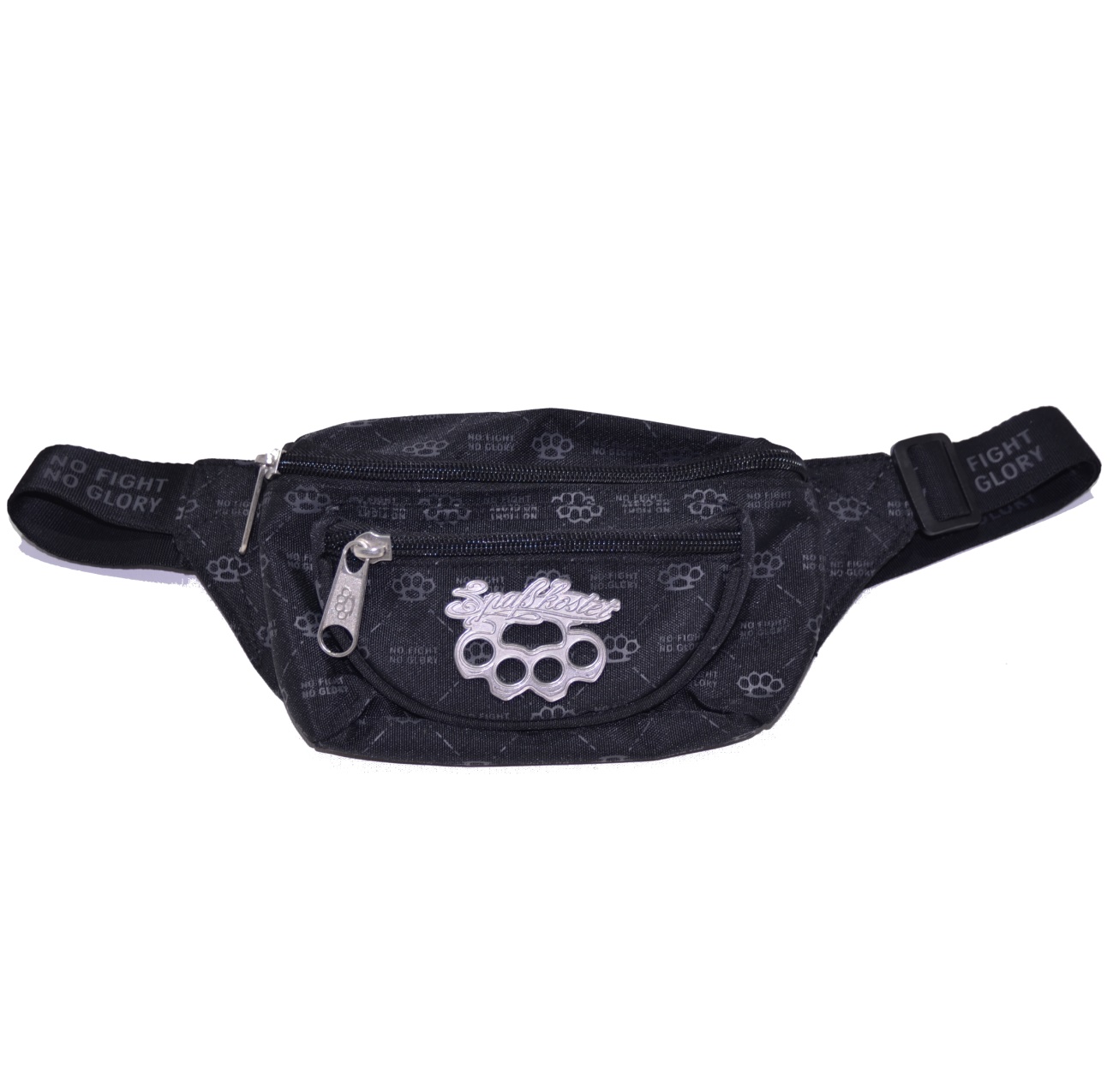 Spaß Kostet Bauchtasche mit Metalllogo und bedrucktem Stoff , 3 Taschen , verstellbarer Gurt