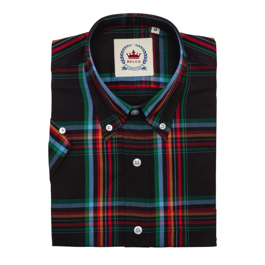 Klassisches Karohemd von Relco, kurzarm, Button Down Kragen. Kleiner Knopf hinten am Kragen. In der Mitte mit Kellerfalte. Kleiner Knopf am Ärmel.