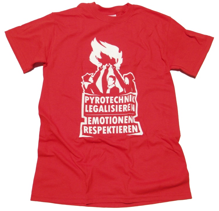 vorn großer Motiv-Druck: - Pyrotechnik legalisieren Emotionen respektieren -