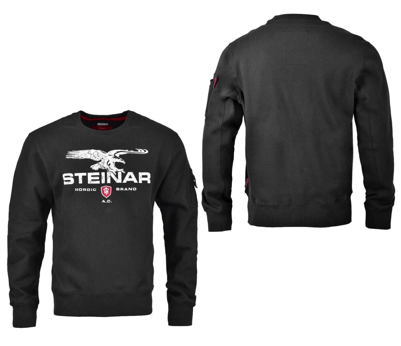 Thor Steinar Sweat mit gedrucktem Steinar-Motiv auf der Front. Stifttasche mit Reißverschluss am Ärmel.